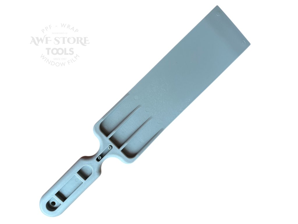 Bulldozer stěrka na fólie okenní autofólie vytlačovací na autofólie v nepřístupných místech. Jako jsou zadní skla u sedanů. Tělo stěrky je pevné a částečně pružné.