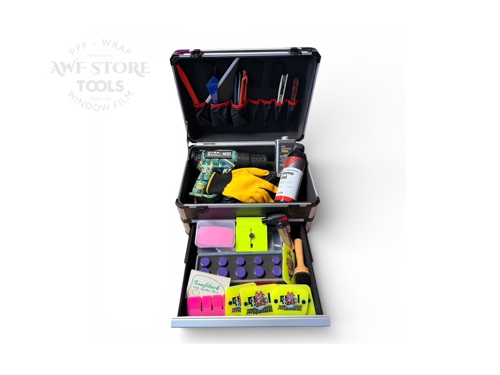 AWF® TOOLS je naše značka nářadí a pomůcek pro reklamu, design, výrobu polepů a nápisů. Specializujeme se na veškerý sortiment pro aplikace wrap a PPF fólií, pomocné nářadí, přípravky, pomůcky pro instalace okenních a bezpečnostních fólií, auto fólií a další.