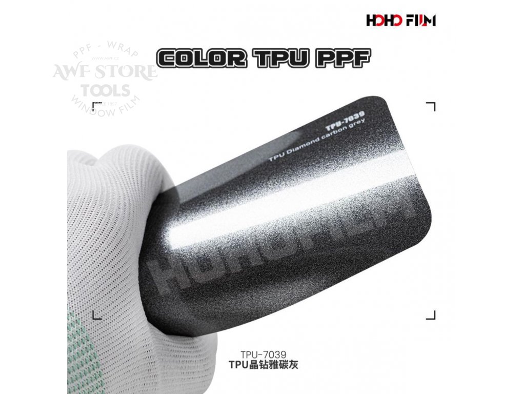 Metalická lesklá šedá Diamond carbon grey TPU 7039 PPF barevná wrap fólie HOHOFILM® polep automobilu