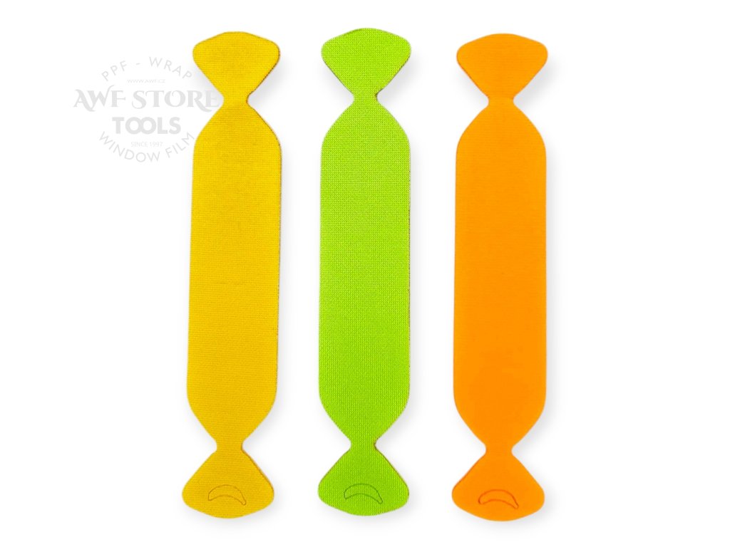 Banana Buffer® byl navržený těmi, kdo rozumí tématu a problematice instalace a aplikace wrapping fólií a balení vozů. Ochranná páska je 12 cm dlouhá a 2 cm široká. Perfektně se hodí pro Vaše oblíbené stěrky na polepy.