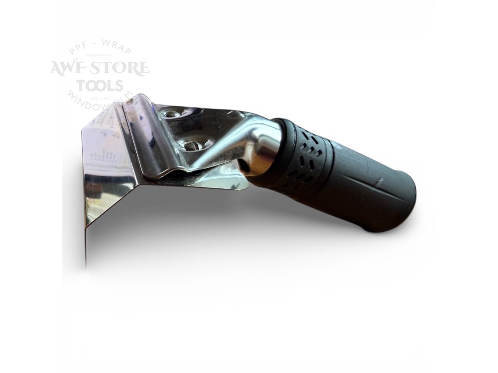 Díky pevné nerezové konstrukci a tvarované pracovní hraně umožňuje přesnou manipulaci bez rizika zlomení fólie. Ideální pro profesionální použití wrap a detailing dílnách.