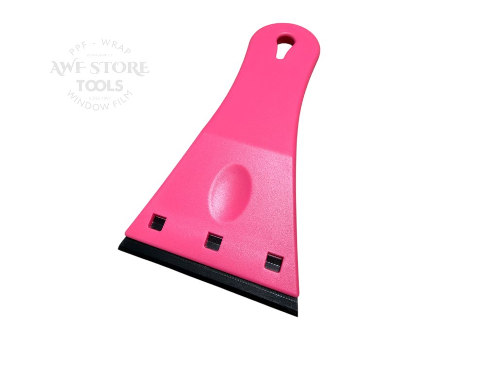 Plastová škrabka růžová s břitem 7 cm na lepidlo nečistoty